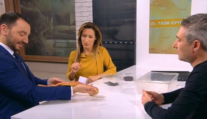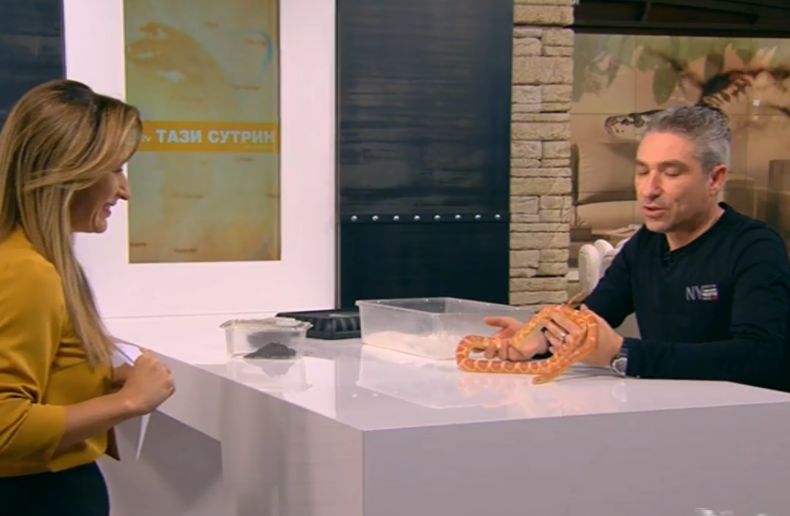 Ранобудните зрители на Би Ти Ви се разсъниха за отрицателно време, след като любителят на екзотични твари Николай Петков ги домъкна в студиото и позволи на водещите да ги "опознаят" отблизо. Антон Хекимян се престраши и взе в ръката си жълтеникавата змия Сашо. Колежката му Биляна Гавазова обаче не посмя да докосне влечугото.