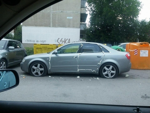Неизвестни вандали наказаха по възможно най-бруталния начин шофьор на „Ауди“, паркирал колата си явно на чуждо място, съобщава Канал3.
