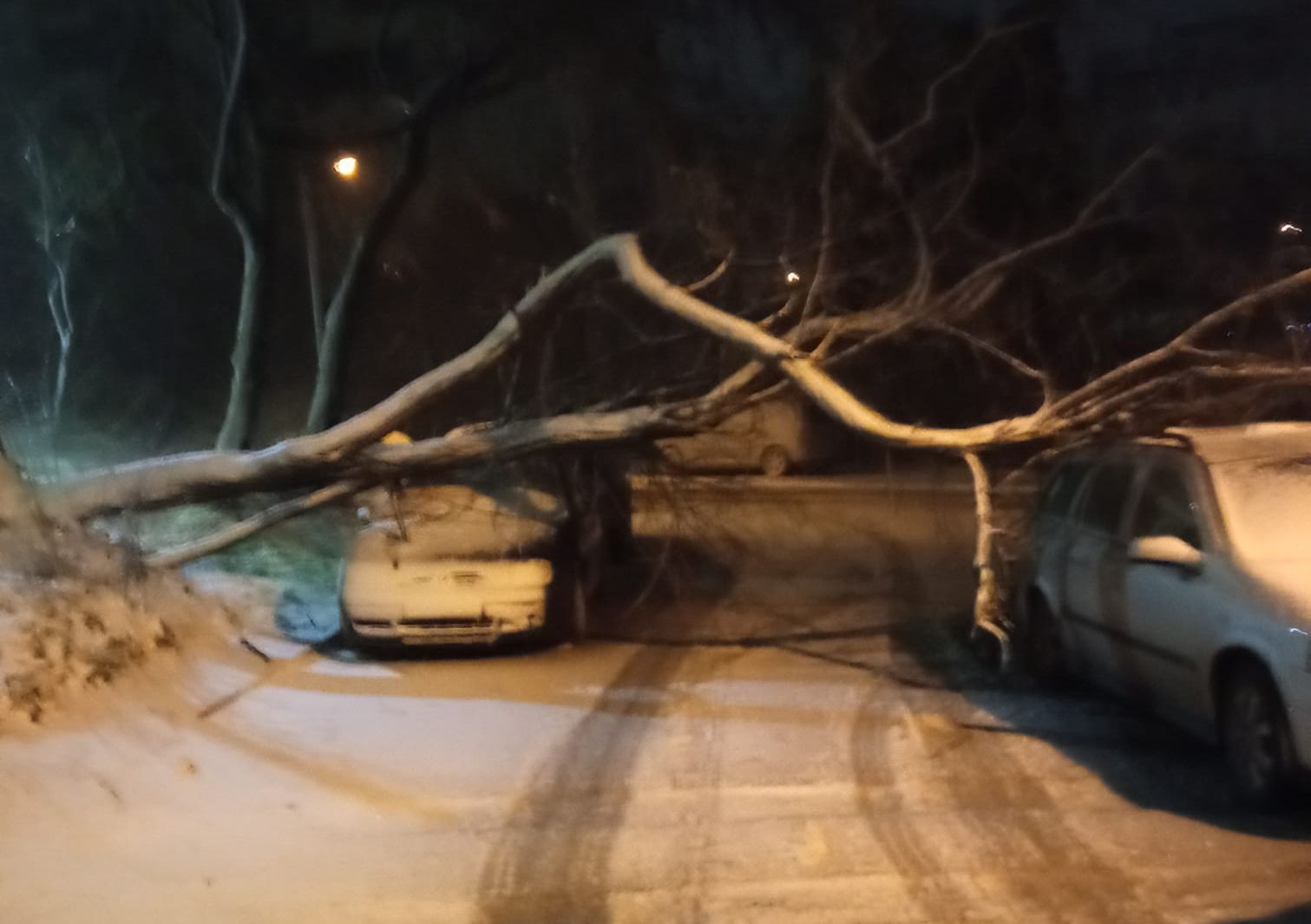 Снежната буря и силният вятър във Варна тази нощ събориха дървета върху паркирани автомобили, видя ПИК. Във Фейсбук групата "Забелязано във Варна" местни граждани споделят снимка, на която се вижда, че две дървета са паднали върху автомобили.