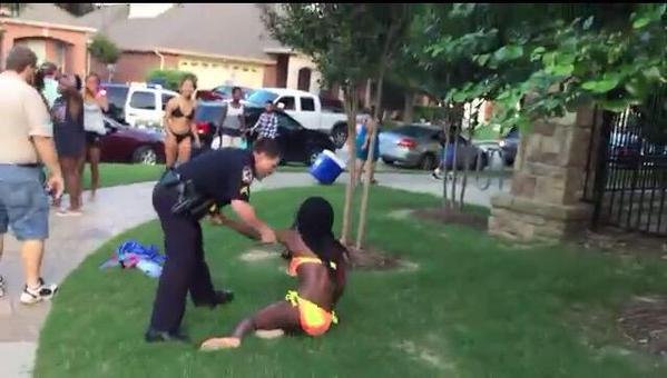 Американски полицай бе отстранен от работа заради скандално видео, предаде Би Би Си. На клипа, разпространен в световната мрежа, се вижда как няколко служители на реда в град Маккини, Тексас, нахълтват на тийнейджърско парти край басейн.