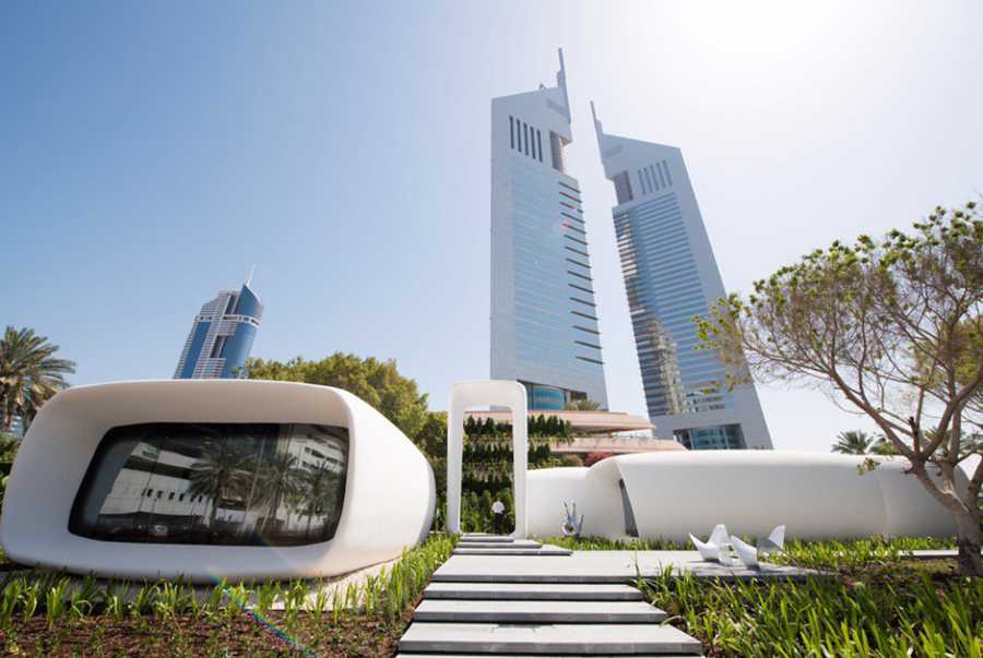 В Дубай отвори врати първата сграда в света, която е построена с помощта на 3D принтер, посочва руският сайт Lenta. Изграждането на едноетажната сграда, оборудвана с най-нови технологии, е отнело по-малко от три седмици. Сградата ще подслони временно офиса на Dubai Future Fund - организацията, която инициира проекта.
