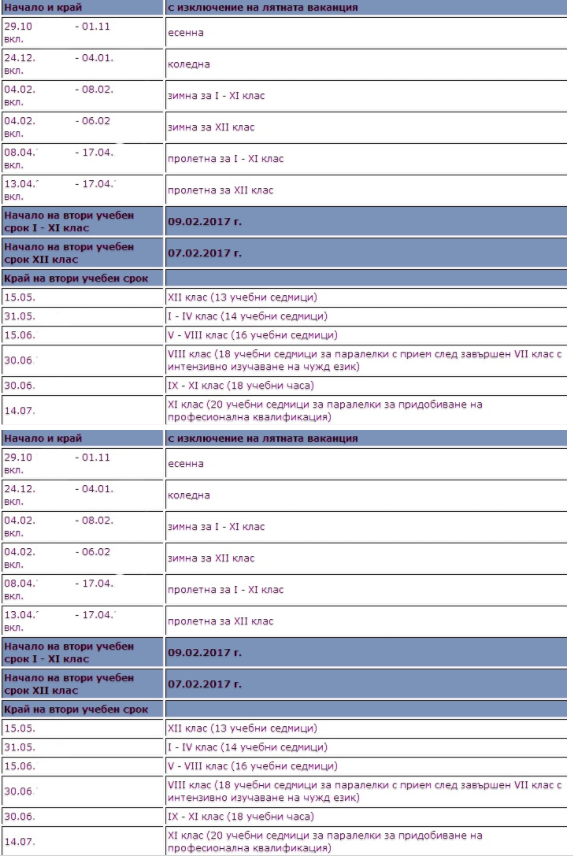 Министерството на науката на образованието изготви график на ваканциите на учениците през следващата учебна година.