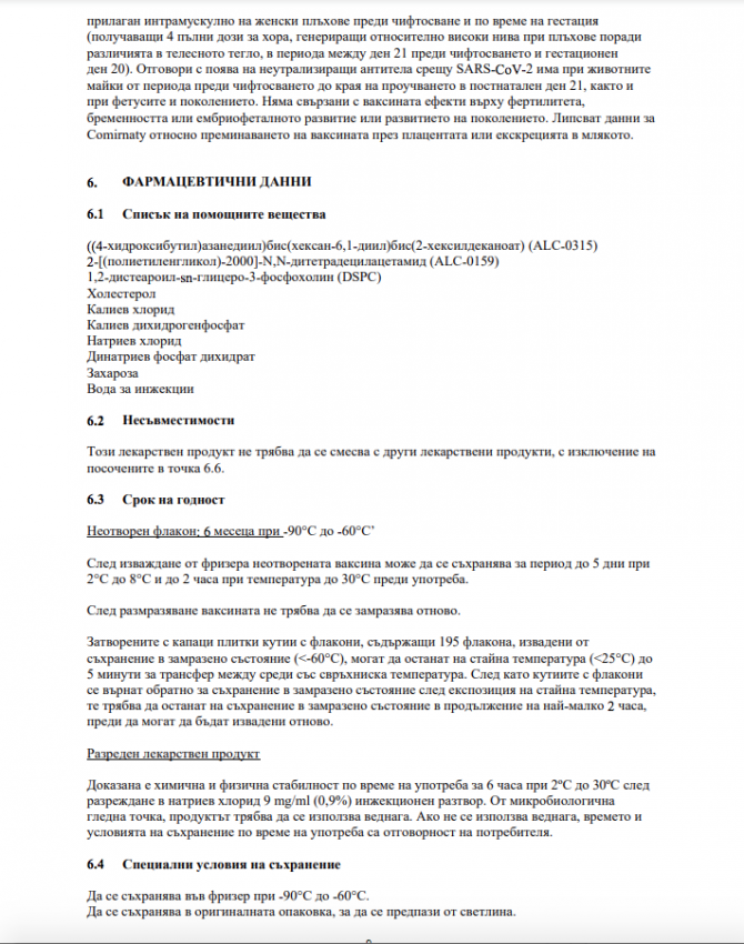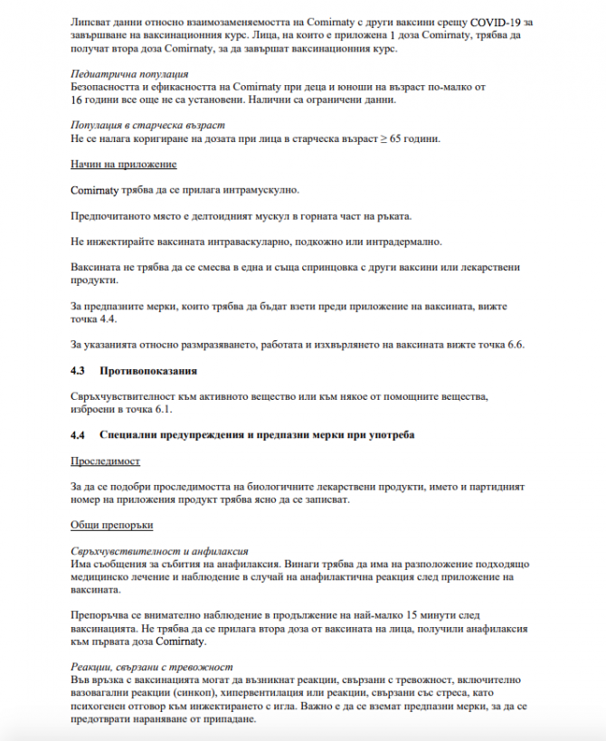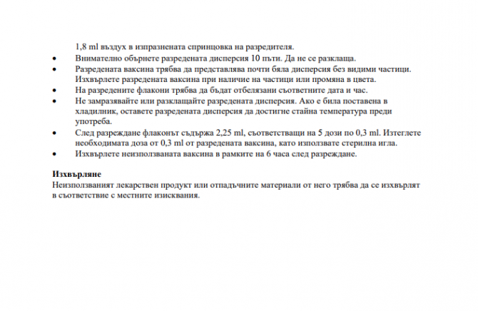 В листовката е указано, че липсват данни относно взаимозаменяемостта на продукта с други ковид ваксини.