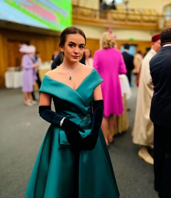 Изборът на облекло на подобни важни събития винаги се превръща във важен акцент. По време на коронацията Габриела е била облечена в изумрудено зелена рокля.