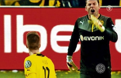 Снощи Борусия (Дортмунд) затвърди отличната си форма, побеждавайки Волфсбург с 2:0, като по този начин се класира на финала за Купата на Германия. Всички се забавляваха - от феновете по трибуните до играчите на терена. Двама от тях обаче намериха време да се скарат. В заключителните секунди, когато резултатът отдавна беше оформен, камерите показаха как вратарят Роман Вайденфелер и Марко Ройс си размениха остри реплики.