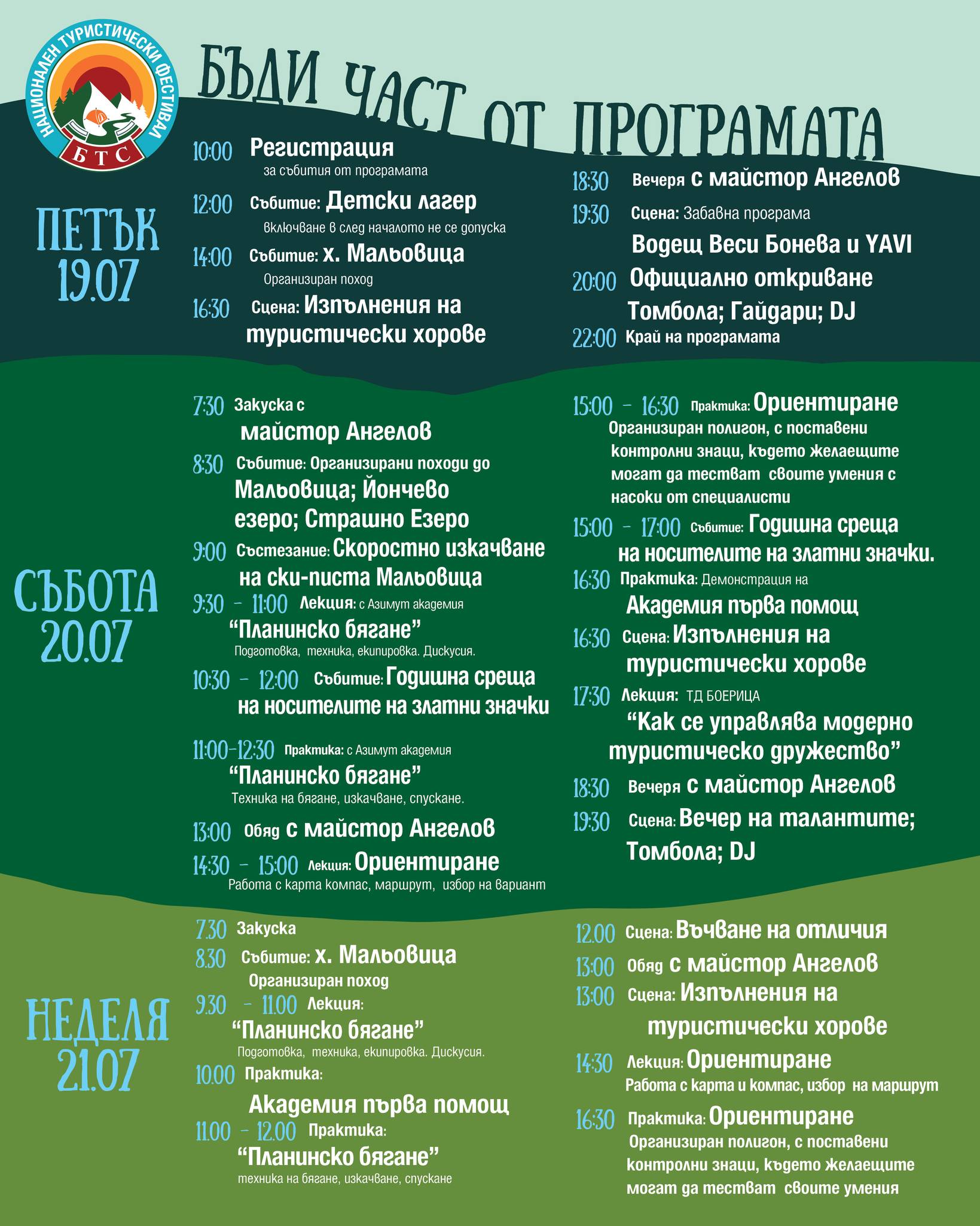 От днес до неделя в курортен комплекс Мальовица БТС ще проведе „Национален туристически фестивал“.