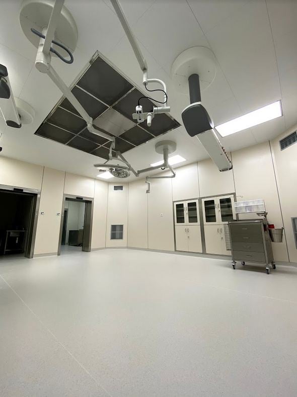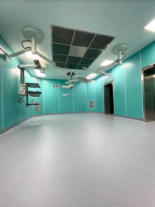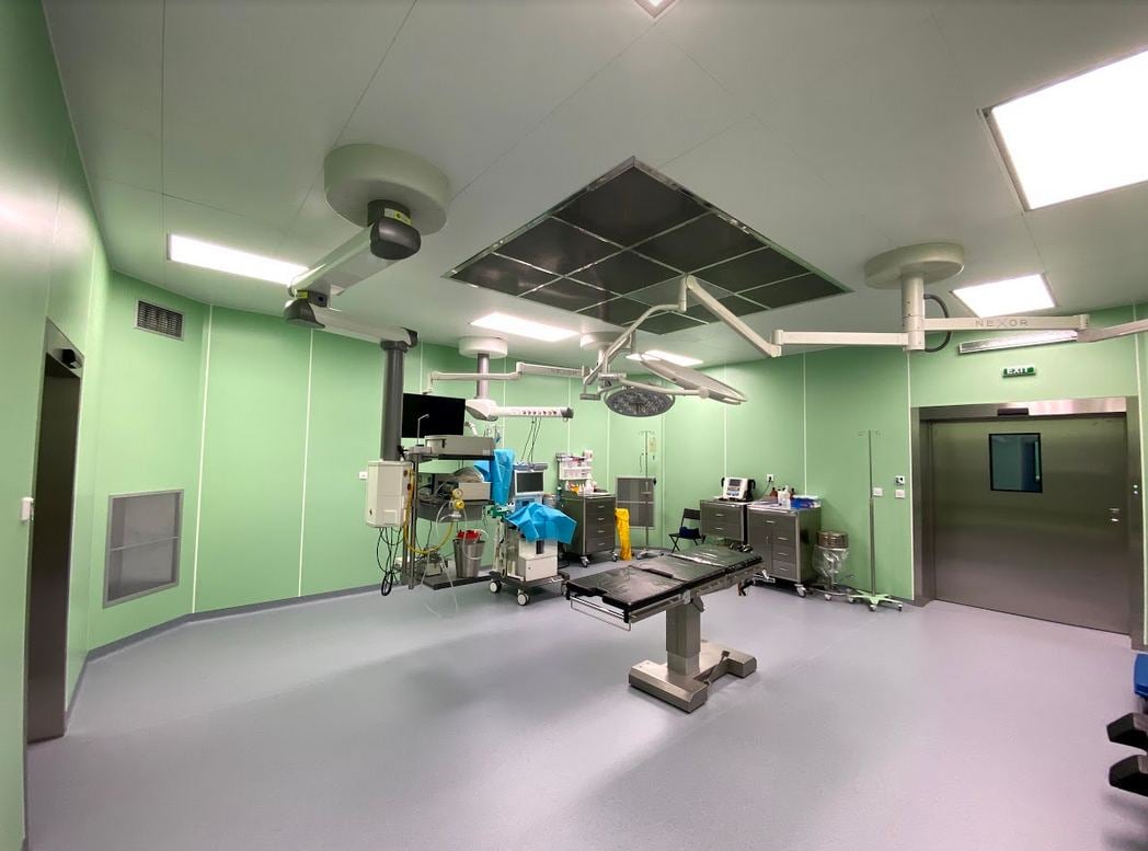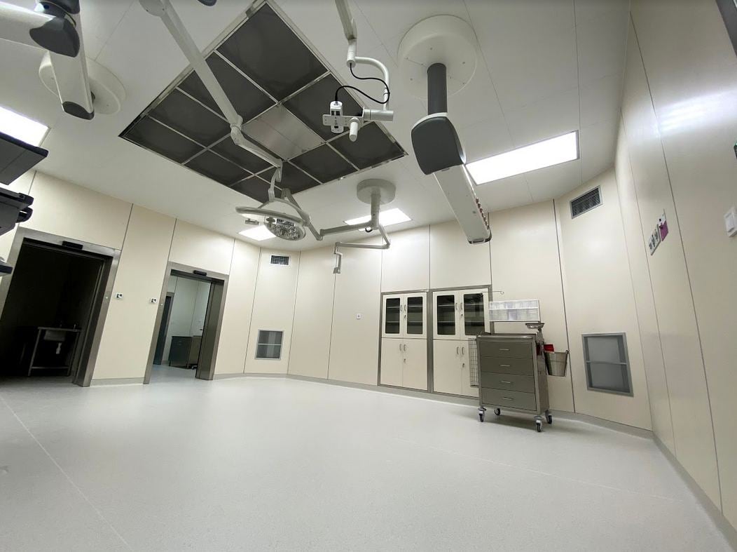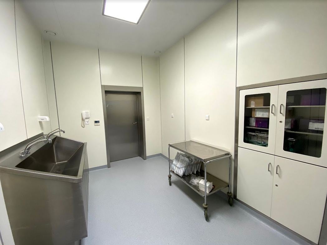 Залите са облицовани с панели от неръждаема стомана, които на практика нямат срок на годност. Изградени по този начин, те са изключително лесни не само за поддръжка, но и за ревизия - панелът се сваля за няколко минути и се поставя за същото време, т.е. операционната може да бъде реконструирана и дооборудвана с нова апаратура в рамките на няколко часа. Подменени изцяло са също климатизацията, вентилацията, ВиК и електроинсталацията.