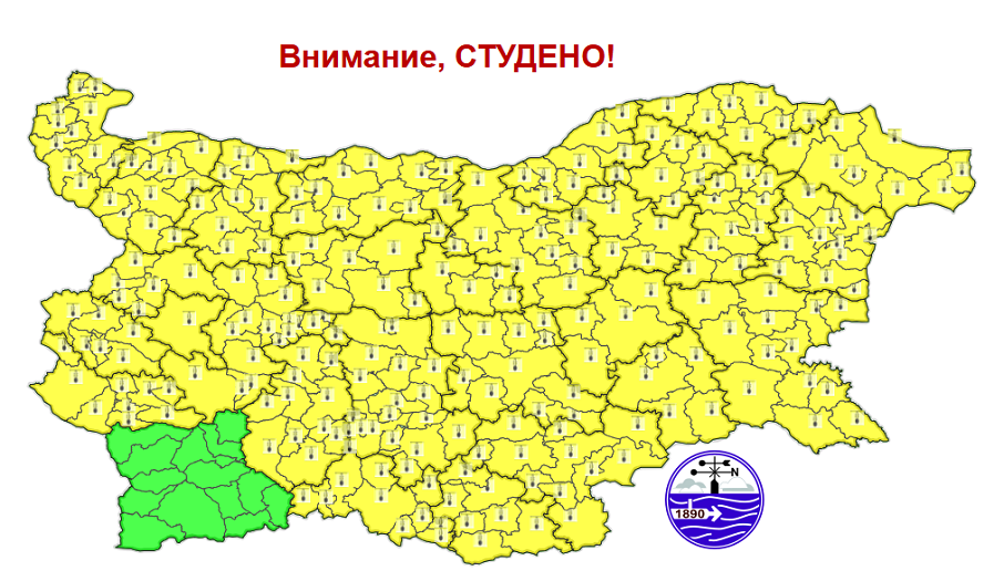 ВНИМАНИЕ, СТУДЕНО! Ледено време сковава цяла България - обявиха жълт код, температурите през деня остават под нулата (КАРТИ)