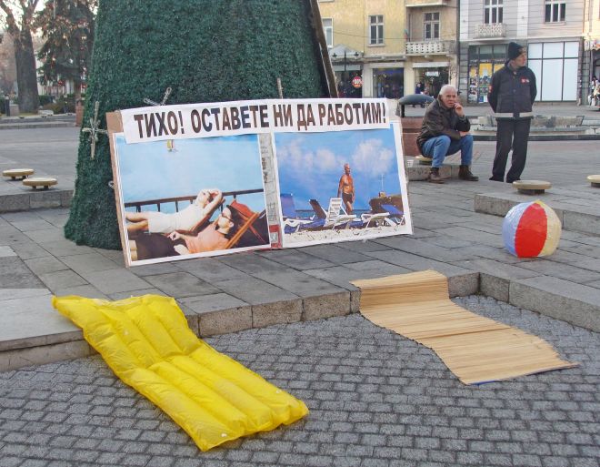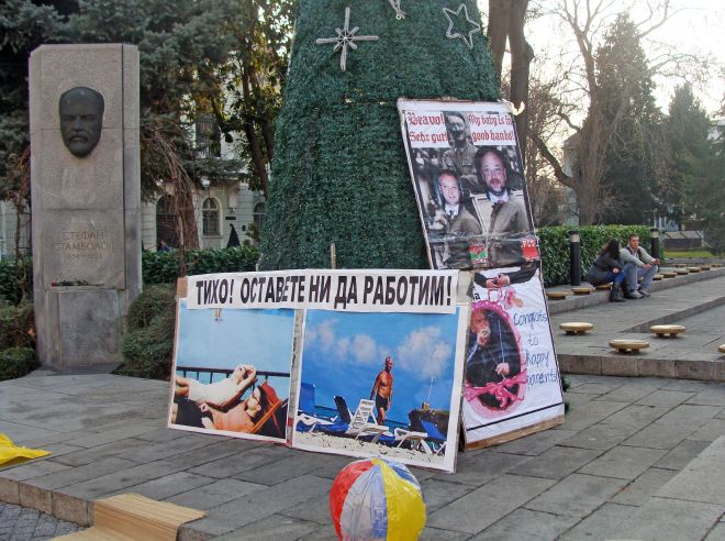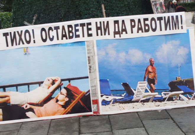 Транспаранти със снимки на "ваканцуващи" политици от управляващата коалиция се появиха на площад "Стефан Стамболов" в Пловдив, съобщи "Булфото".