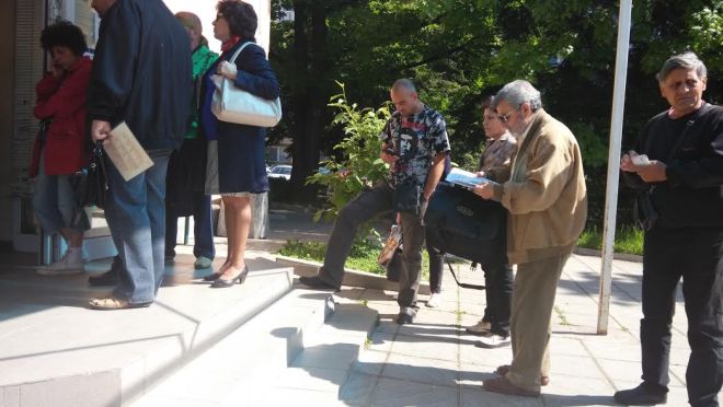 И пред самата сграда - още чакащи, все за касата: