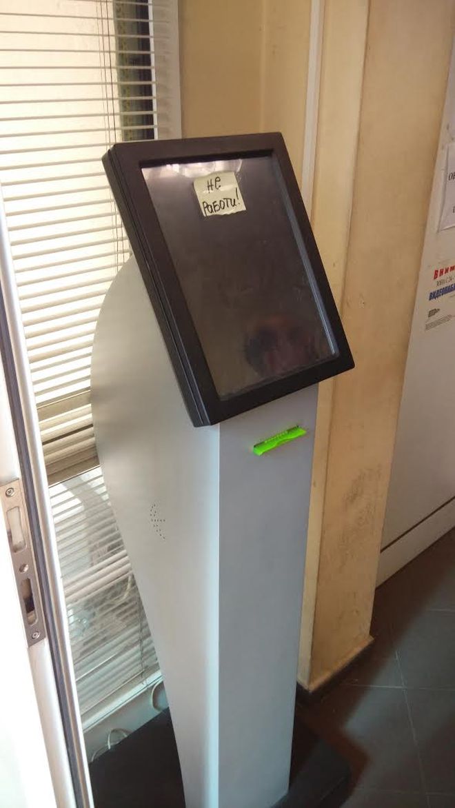 В столицата на страна от ЕС, в 21 век, на вратата на касата стои това: