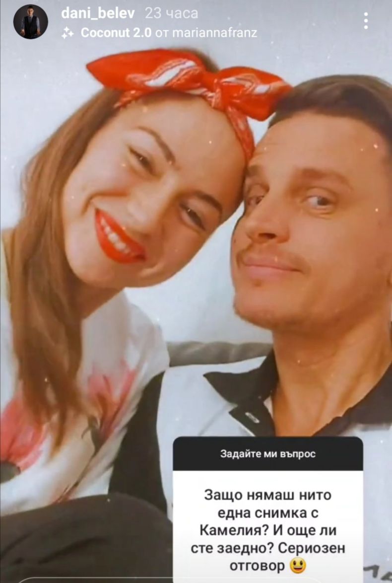 От вчера Белев перидично отговаря на въпроси на последователите си в Инстаграм. Любопитните фенове непрекъснато го човъркат за отношенията му с Даяна и Камелия. Интересът на онлайн потребителите дойде в повече на илюзиониста и той реши да сложи край на догадките.