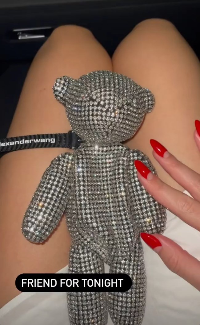 Въпреки цената си, кристалното мече е с маломерни размери, побира ключове и пари. "Приятелят ми за тази вечер", казва за скъпарския си аксесоар Лолита.