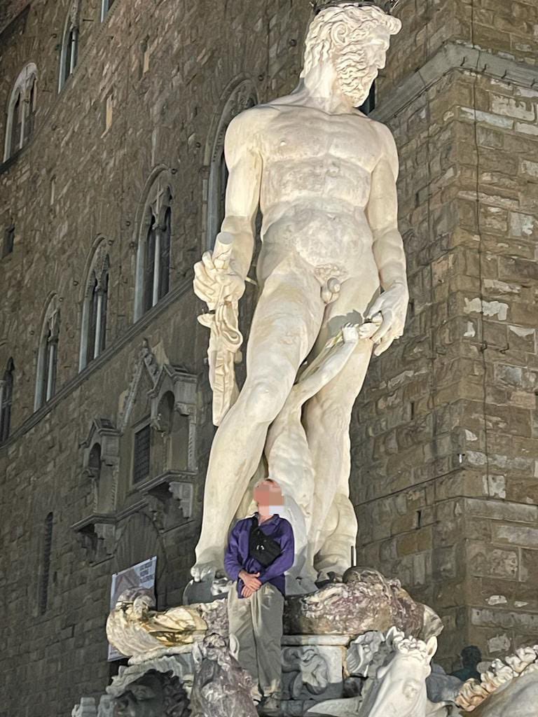 Questo turista ha pensato bene di salire sul Nettuno per un selfie. Per fortuna nessun danno, il sistema di allarme ha funzionato. Grazie alle telecamere del Comune è stato individuato e pagherà una multa salata. Contro il vandalismo sui beni culturali non ci sono giustificazioni pic.twitter.com/QVvBNYaygI