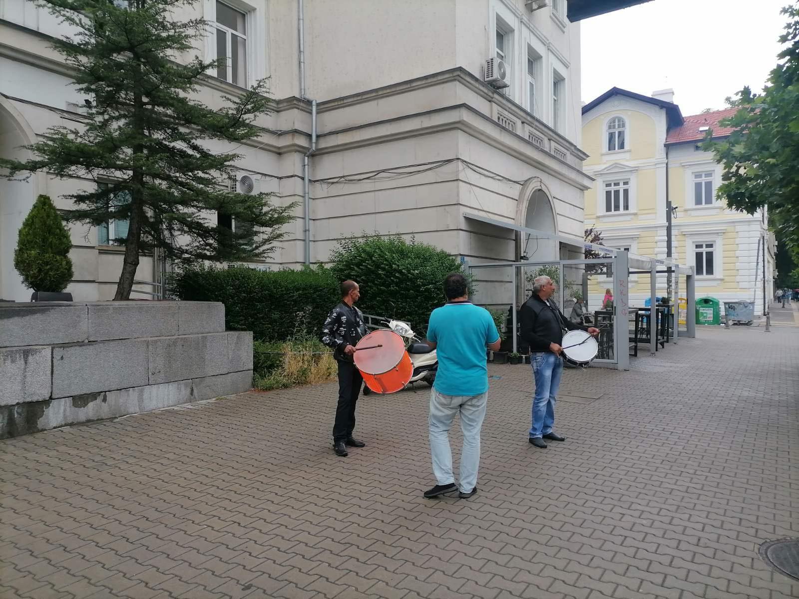 Ромски оркестър се появи тази сутрин пред Министерството на младежта и спорта в центъра на София, предаде Sportal.bg. Музикантите забиха няколко характерни парчета пред входа на зданието.