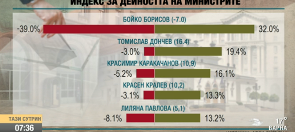 Томислав Дончев се откроява отново като министър с високи оценки. След него е Красимир Каракачанов и после - Красен Кралев.