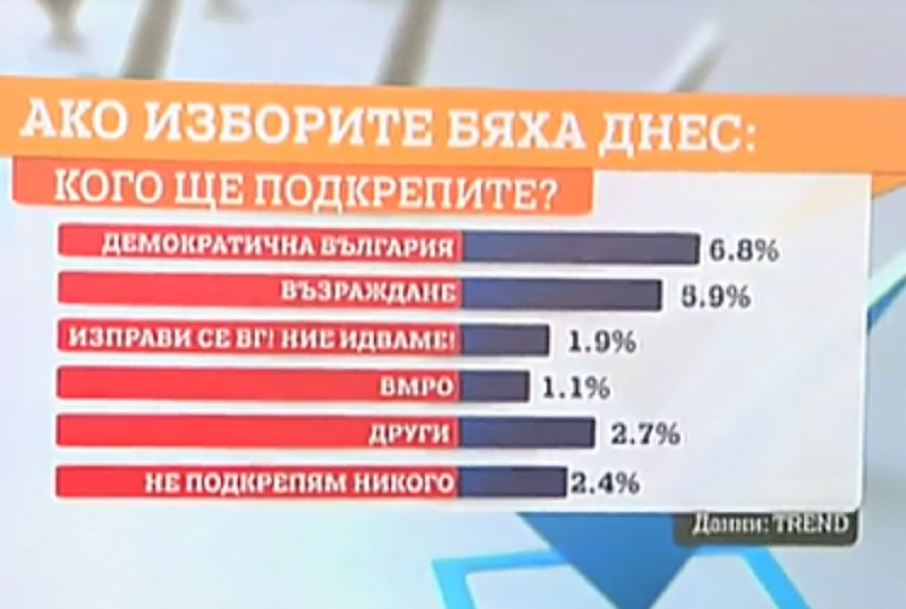 Резултатите бяха показани в ефира на Нова телевизия от политолога Димитър Ганев от изследователски център "Тренд".