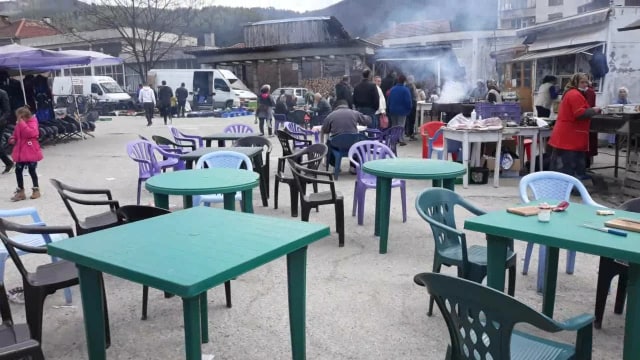 Пред димящите скари пък се вият огромни опашки от огладнели купувачи. Дистанцията между хората там е едва няколко сантиметра. Скараджиите също не носят предпазни средства. Деца на тумби се тълпят пред количките за варена царевица и захарен памук. И тук продавачите са без маски на лицата.
