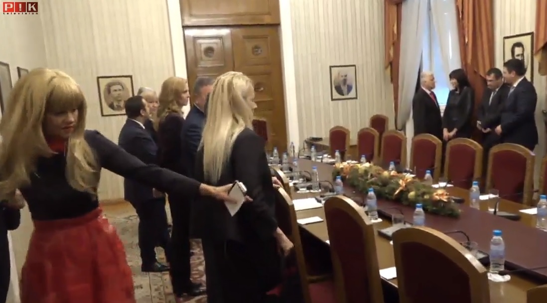 Дългокрака блондинка с напомпано деколте и доста крещящо облекло в червено шашна министри и съветниците им по време на дискусията им с президента Румен Радев на "Дондуков" 2 преди минути, видя ПИК. Трима членове на кабинета бяха на среща с държавния глава, за да обсъдят кризата с водата.