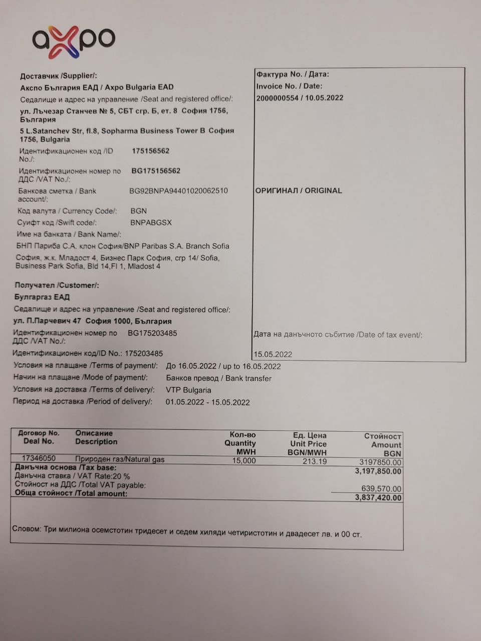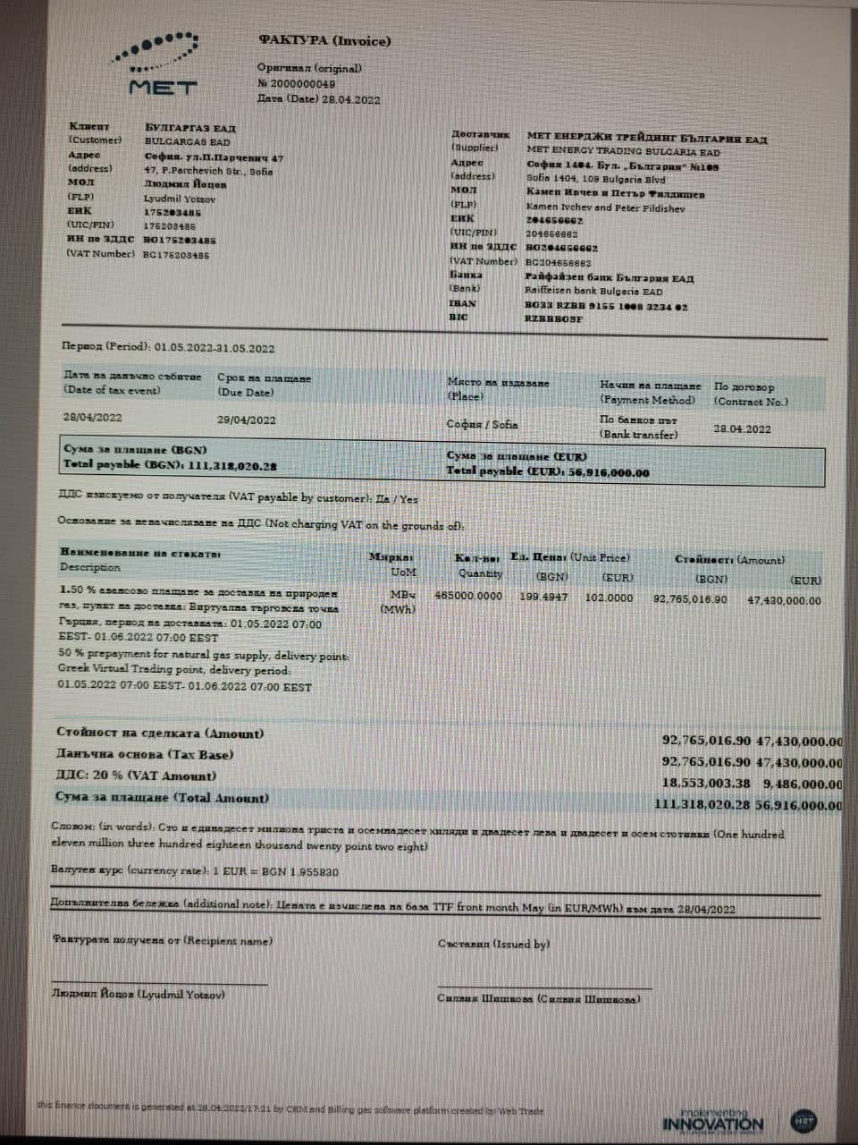 ГОРЕЩО В ПИК: Ето ги фактурите, които доказват, че Киро и Асен са купували руски газ, но през посредници (СНИМКИ)