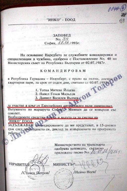 В Докладна записка от Тотка Йоцева, контрольор на "Инко" ЕООД, до министъра на търговията Валентин Карабашев е написано буквално следното: