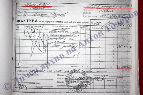 Фактура, издадена от „А и В консултинг“ към „ИНКО“ за 35 000 лв. – останалата сума за за законопроект за радио и телевизия, които „НИКО“ трябва да плати