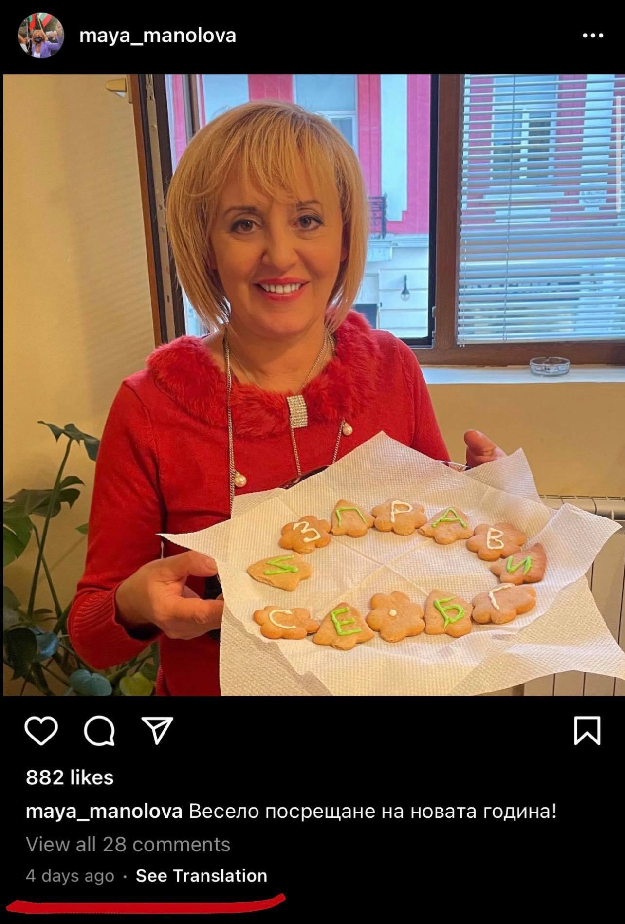 Младото момиче с псевдоним Флорчето, която е следена от хиляди българи, преди дни си направи шега с предстоящите избори и реши да направи коледни сладки с цветовете на партиите. Флорчето пусна снимката преди Коледа и събра десетки хиляди харесвания, но не щеш ли нейна последователка се оказала и Мая Манолова, която дори не се посвени да я окраде. Така само няколко дни по-късно тя спретна нейна версия на сладките на Флорчето, но с името на нейното движение, а и доста по-непрофесионално. "Очевидно Манолова е добра само в кражбата на идеи, но и в тяхното реализиране", отчитат читатели на ПИК в сигнал до медията ни.
