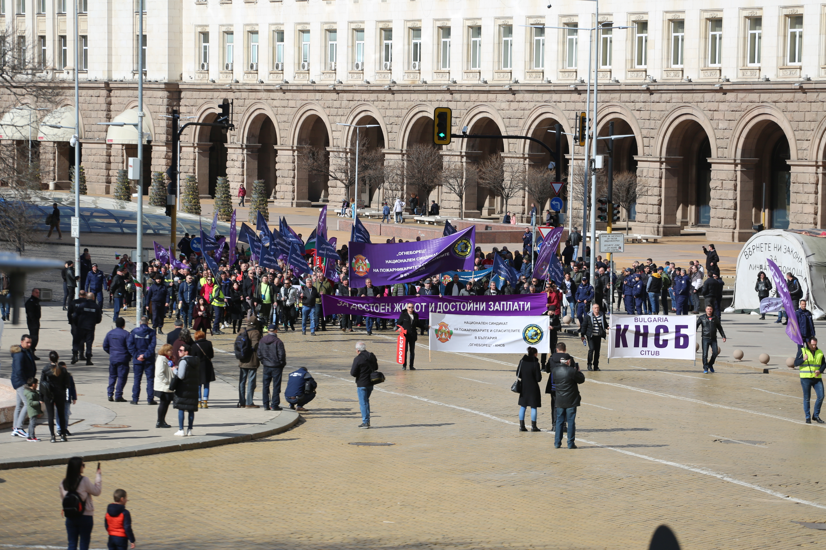 Шествие в центъра на София направиха протестиращите пожарникари и огнеборци. Те се опитаха да внесат декларация в МС, но им бе обяснено, че тя трябва да бъде изпратена в работен ден.
