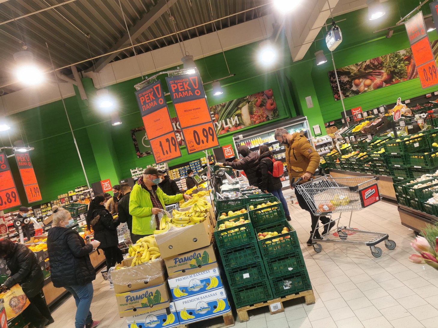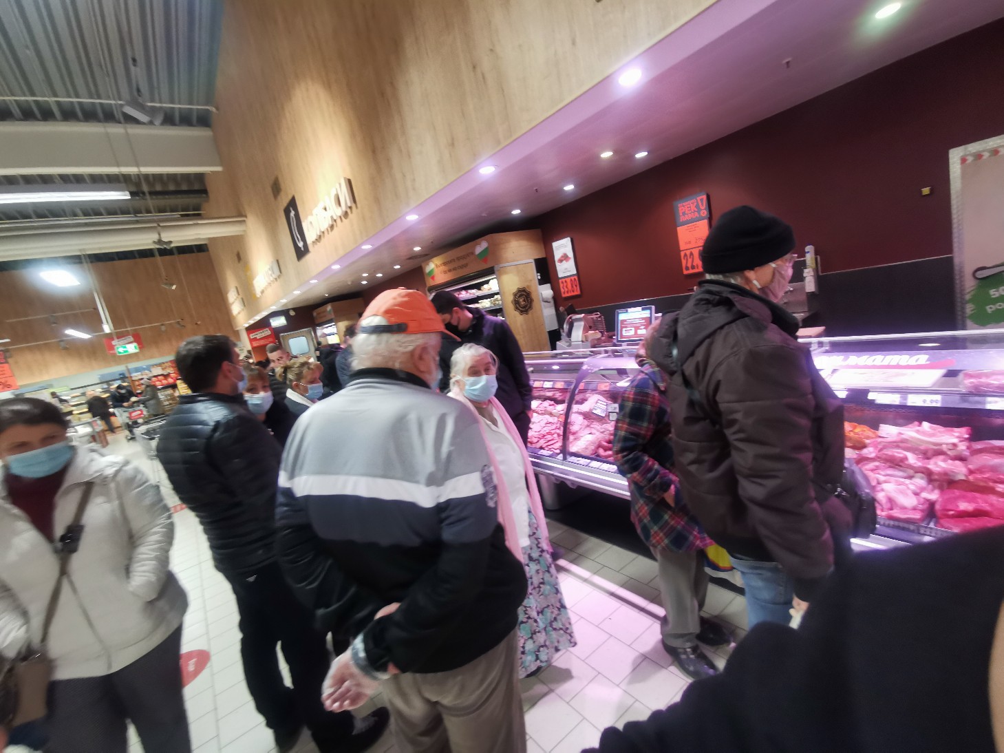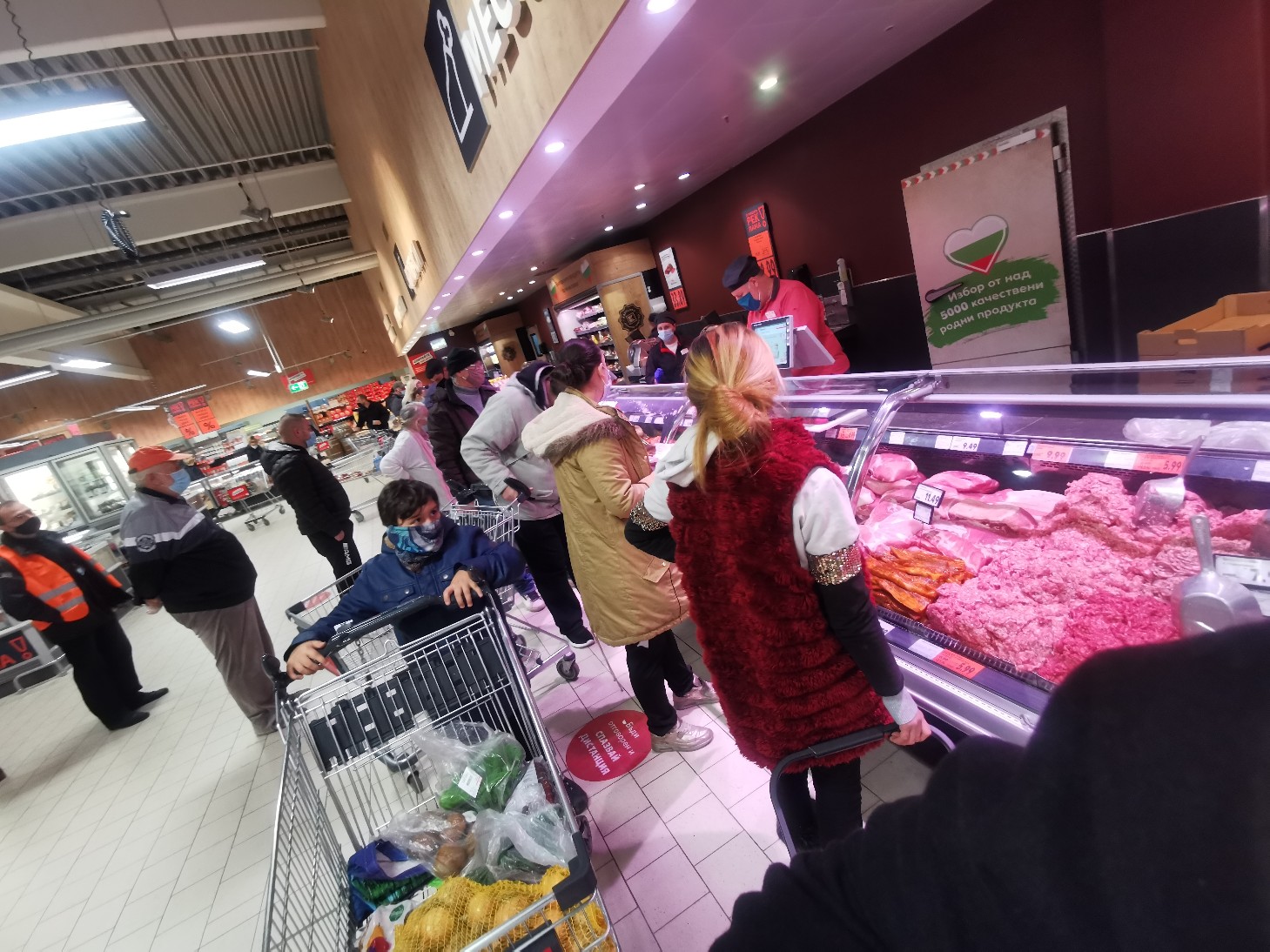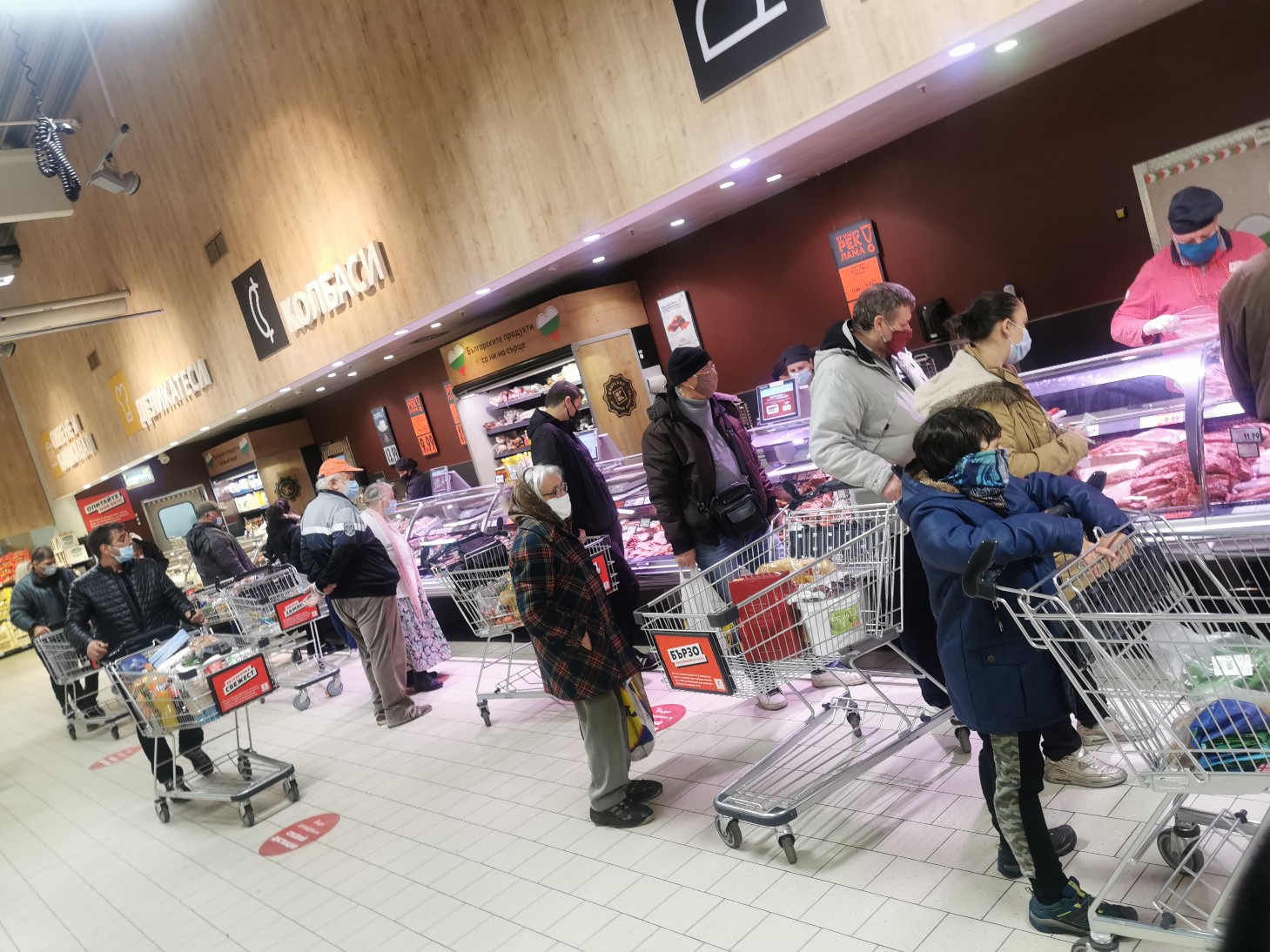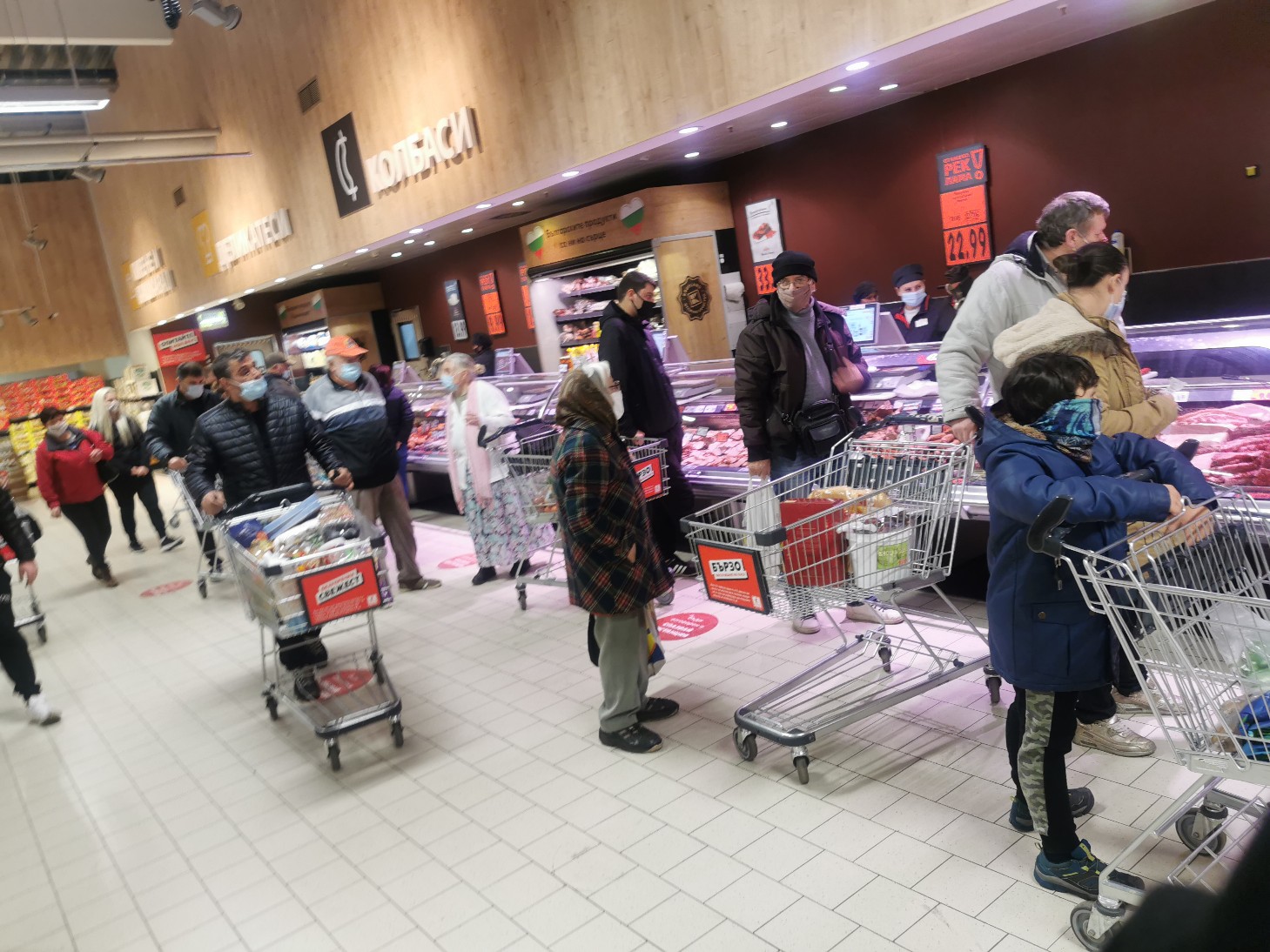 Опашките започват още от паркингите пред хипермаркетите, където трудно се намира място за паркиране. Пред входовете на магазините пък се извива дълга редица от хора, които изчакват продължително, за да могат да си напазаруват.