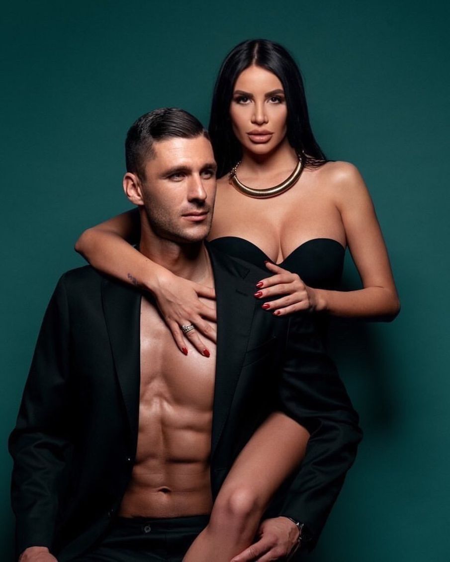 Сега двойката застана заедно пред обектива, където футболистът показа атлетичното си тяло.