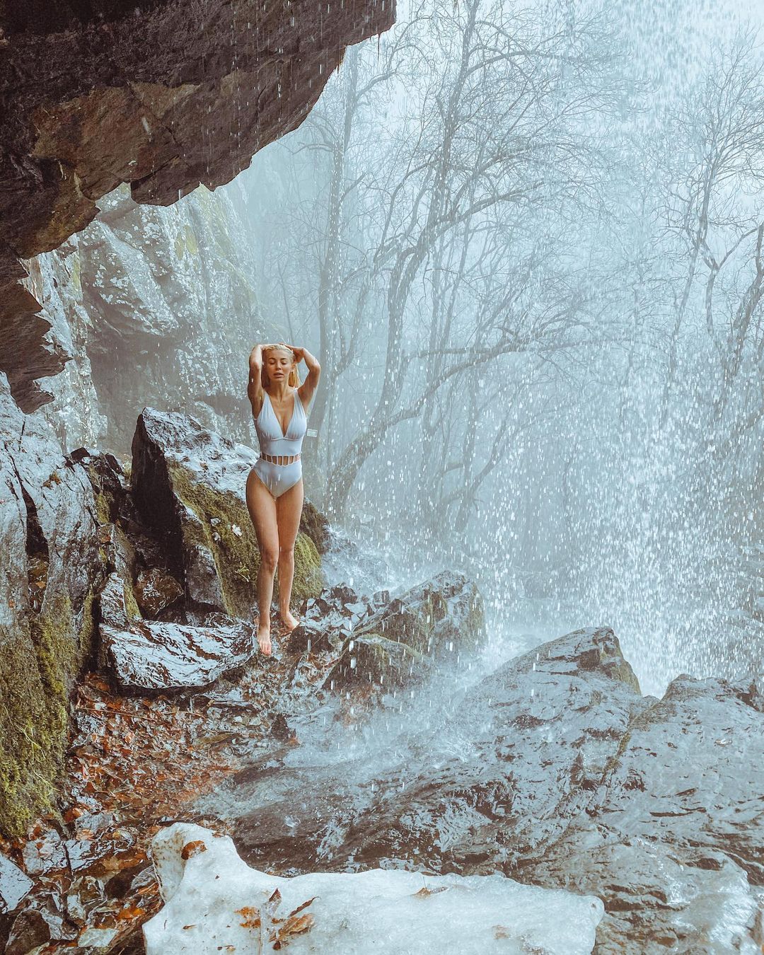 ГОРЕЩО: Насред зима, полуголата Мегз си отваря чакрите под Боянския водопад (СНИМКИ)