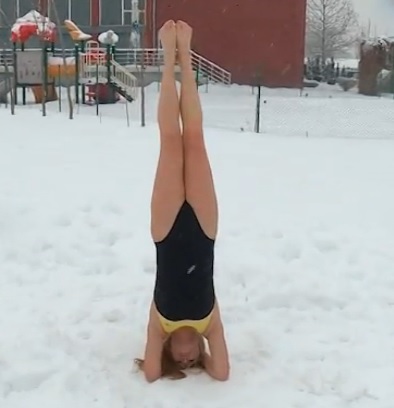 Йога инструктурката Лана Петкова разтопи натрупаните преспи след като се впусна да практикува снеготерапия по бански.