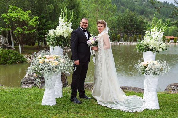 Булката бе заложила на дълга бяла рокля тип русалка, с гол гръб и воал което е в крак с последните световни тенденции.