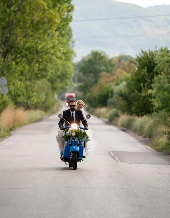 На нестандартната сватба присъстваха освен техни роднини, колеги и приятели. Полина и Борис бяха избрали две двойки кумове - семейство за църковния брак и най-добрите си приятели за изнесения ритуал. Тържеството се проведе в “Приказната градина” в Елин Пелин.