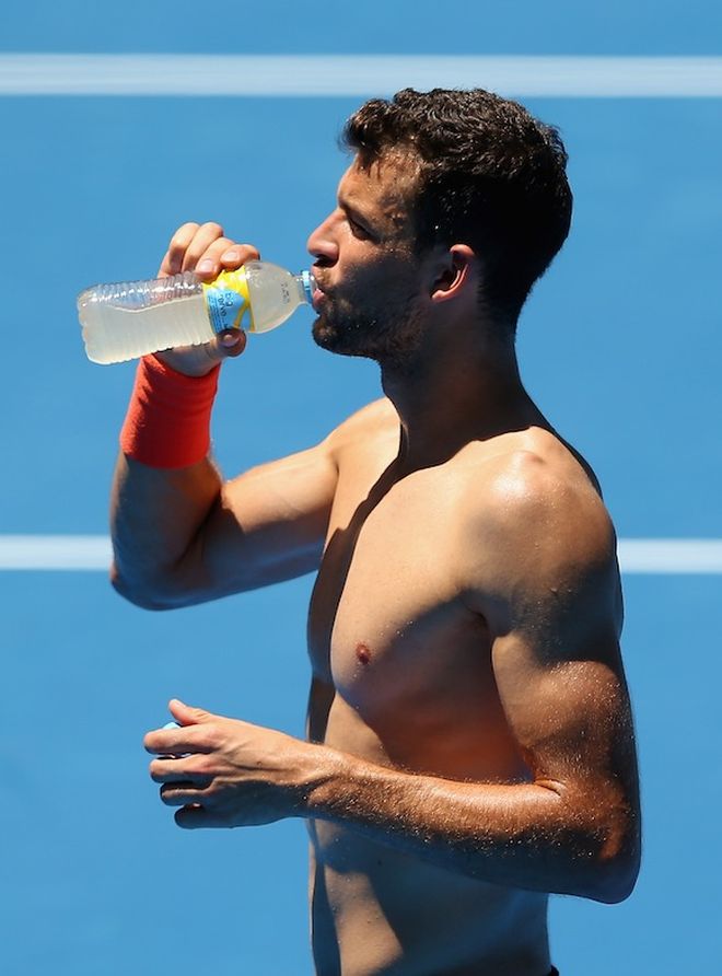 Заради голямата жега по тези ширини Гришо игра на "Мелбърн Парк" гол до кръста и демонстрира, че неслучайно американският сайт Bleacherreport го е поставил на четвърто място сред тенисистите с най-добра физика в професионалния тур. Българинът може да се похвали с атлетична фигура, страхотни плочки на корема и добре оформени бицепси, които в съчетание с отлична техника без съмнение биха могли да му донесат така жадуваната титла от Големия шлем и пробив в топ 5./sportal.bg