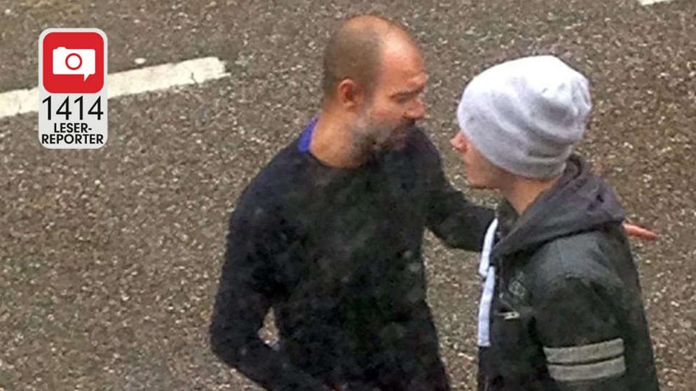 Въпреки неприятната ситуация, Гуардиола е останал в добро настроение и дори се е снимал с преминаващ минувач, който го е помолил за снимката.