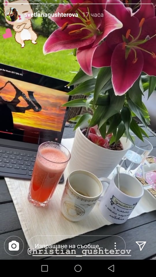 Денят на Гущерови започва с романтика веднага след събуждането им, става ясно от последното й стори. Семейството се събужда с нежна музика от саксокофон и омайващия аромат на цъфнал лилиум, пише "Хотнюз".