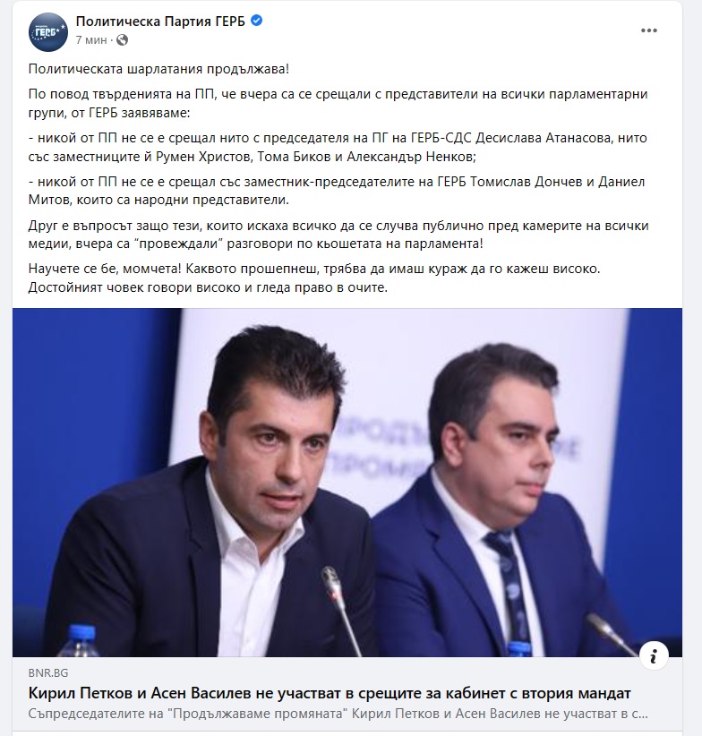 По повод твърденията на ПП, че вчера са се срещали с представители на всички парламентарни групи, от ГЕРБ заявяваме: