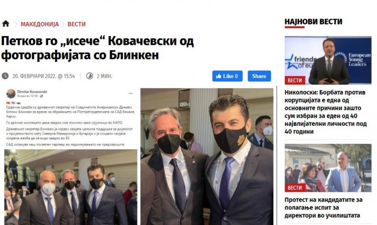 Пак от македонските медии българската общественост разбра и, Димитър Ковачевски също се е срещнал в кулоарите на Мюнхенската конференция по сигурността с държавния секретар на САЩ Антъни Блинкън.