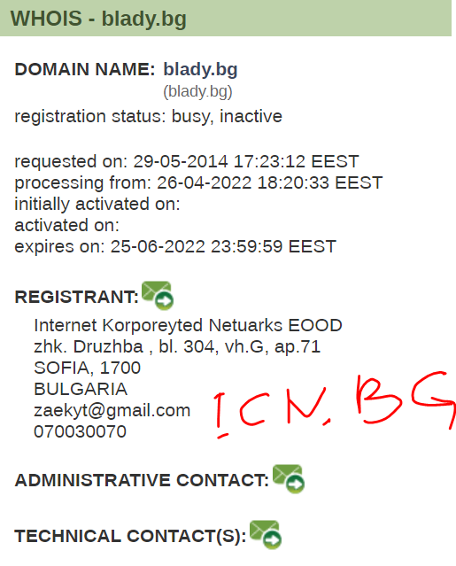 Още по-неловък е опита му да прехвърли домейна на DZZD BLADY.BG.
