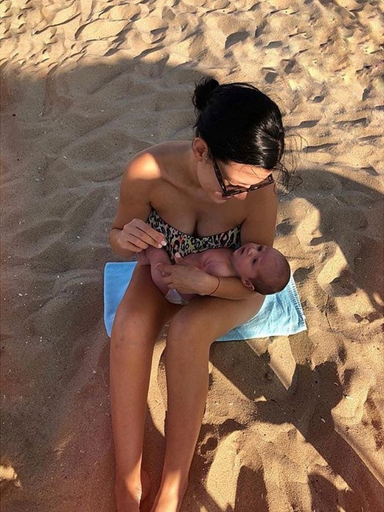 Атрисата Ралица Паскалева се е отдала на най-хубавия момент в живота - майчинството, и разпуска активно край вълните в компанията на двумесечния си син Максим и свекърва си Дора.