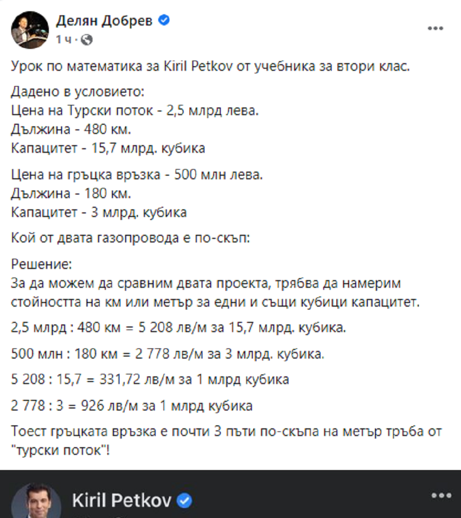 500 млн:180 км = 2778 лв/м за 3 млрд. кубика.
