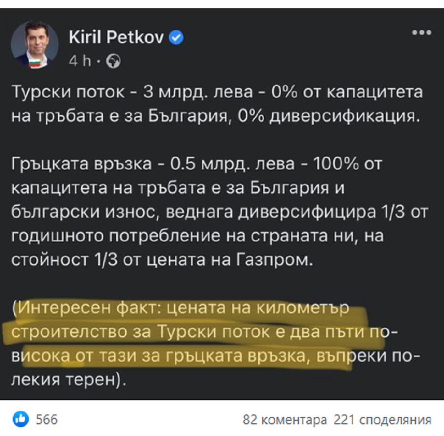 Тоест гръцката връзка е почти 3 пъти по-скъпа на метър тръба от "турски поток"!