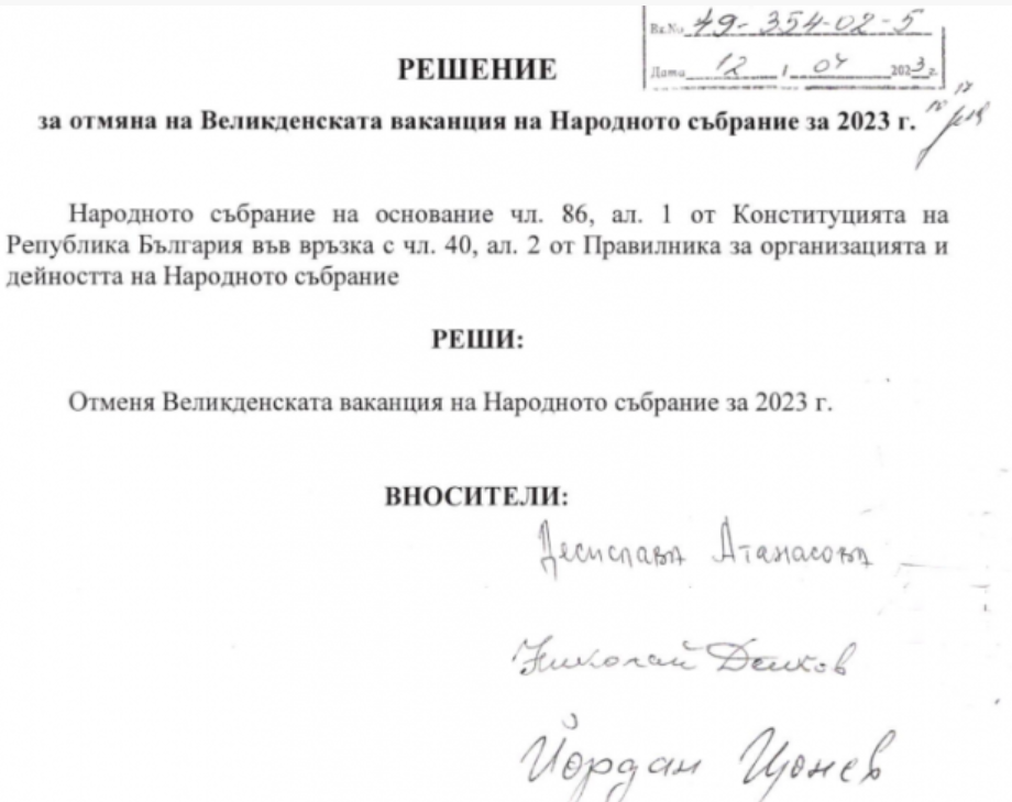 Всички парламентарни сили са се подписали под решението да не почиват, с изключение на "Възраждане".
