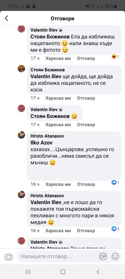 Депутатът от ВМРО Стоян Божинов от Петрич хули, обижда и псува в социалните мрежи своите съграждани, които критикуват поведението на войводите при нападението над централата им. Някои от включилите се да изразят мнение и гражданска позиция усетиха дори закани от страна на Божинов и предупредиха, че ще запазят тези му думи като доказателство. Най-остро влиза в полемика с Валентин Илиев, към когото хвърля обиди и дори заплахи. Впечатляващо е и още едно заключение на депутата от Петрич – „ти си страхливец и нещо се насираш“ с последващо допълнение „ще дойда да изближа нацапаното, не се коси“.