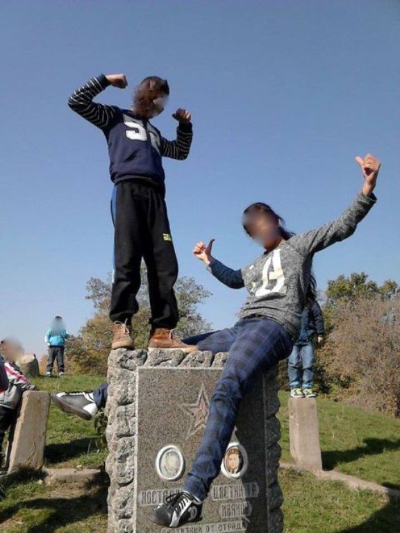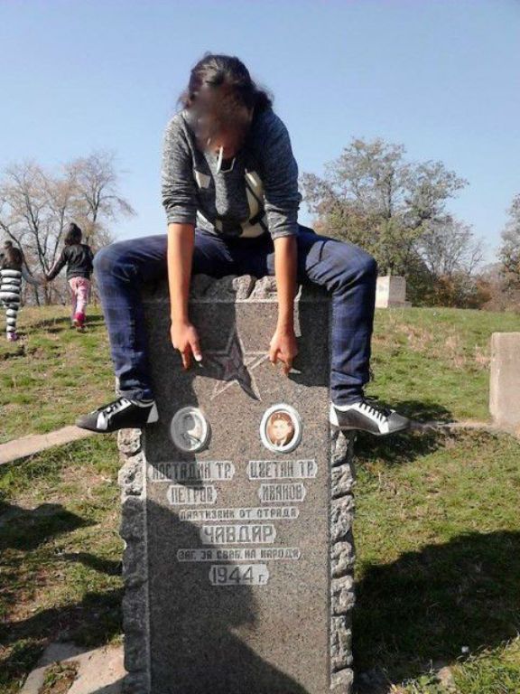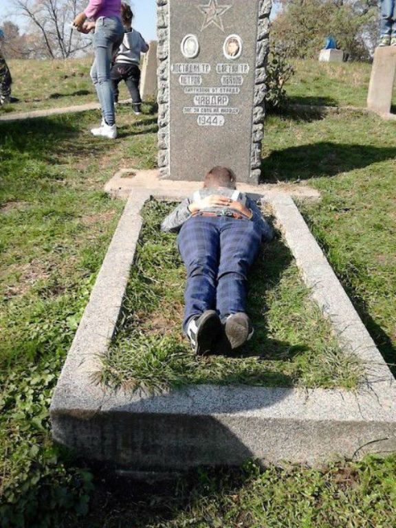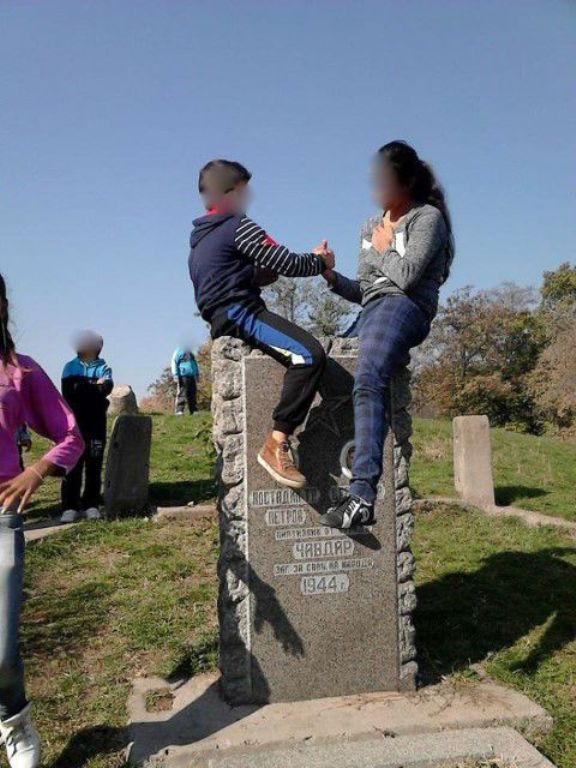 Пореден случай на гавра с български гробове взриви интернет. На снимки, публикувани в социалната мрежа, се вижда как деца лягат върху гроб, а останалите не остават безучастни.
