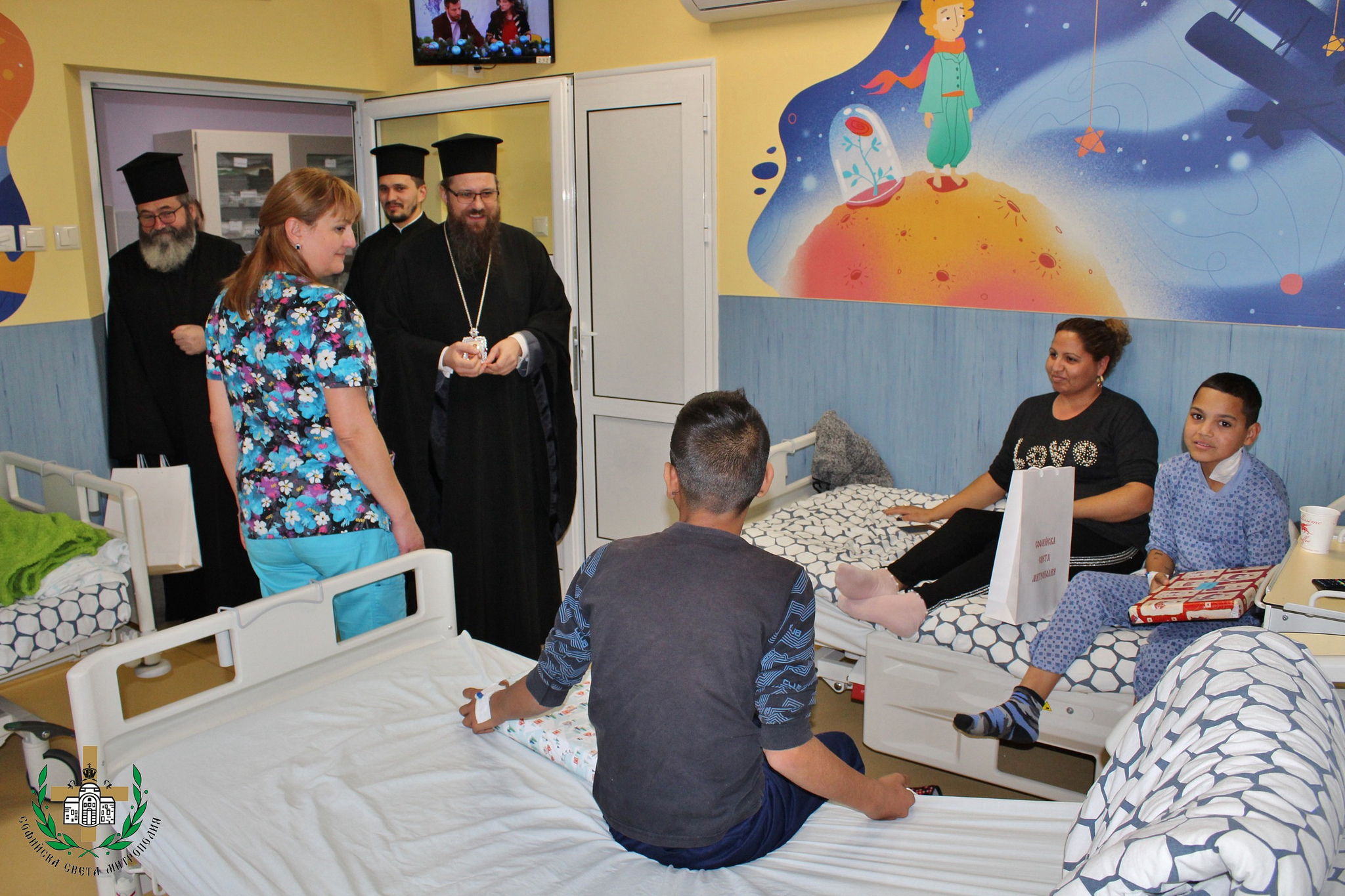 Епископ Поликарп и представителите на Светата митрополия обиколиха детското отделение, където малките пациенти получиха подаръци и благословение от името на Негово Светейшество патриарх Неофит.
