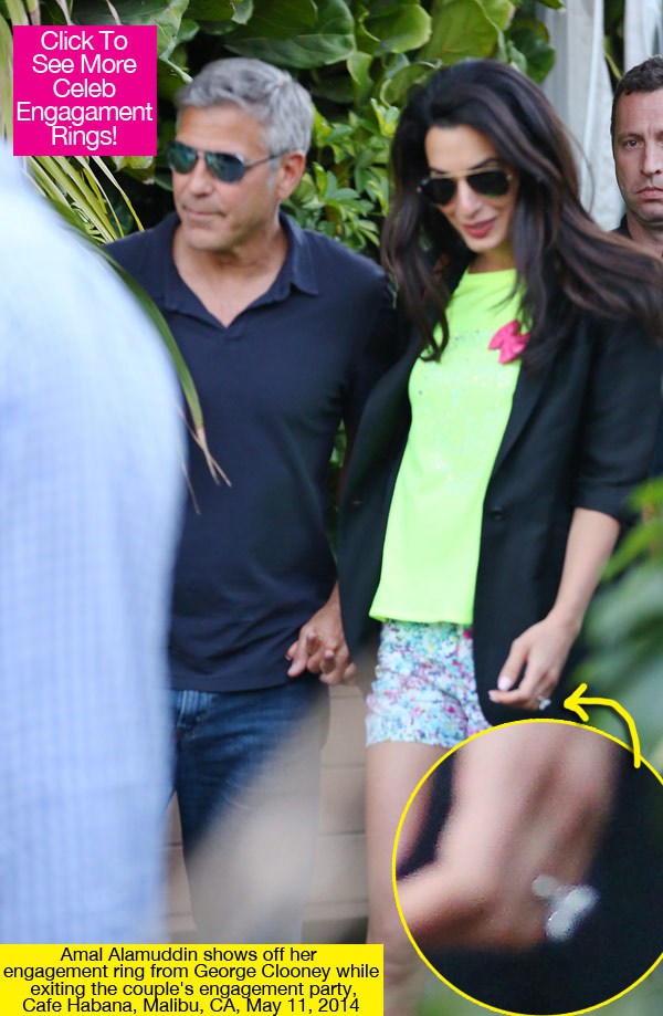 А фотографите не спирали да снимат ръката на красивата Амал, на която блестял огромен и нежен камък.