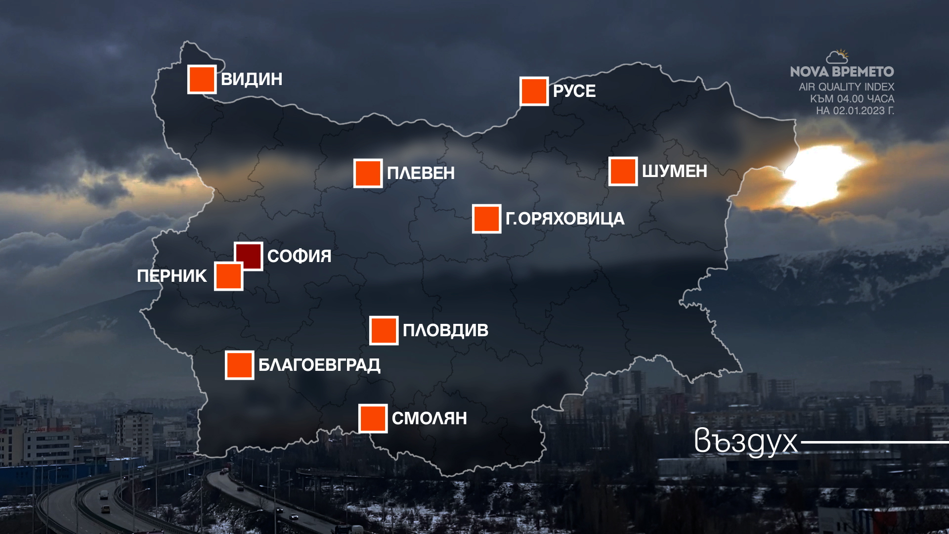 За пореден ден тихото време е причина за осезаемо замърсяване на въздуха в градските райони в почти цялата страна. През нощта и призори на 2 януари 10 от станциите на Изпълнителната агенция по околна среда отчитат концентрация на фини прахови частици (ФПЧ 10) над допустимите нива. В една от станциите в столицата нормата е превишена повече от 3 пъти.