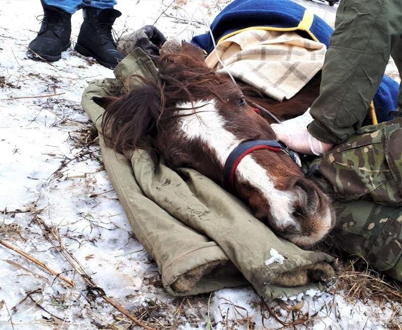 Доброволците от организацията се погрижиха за изоставената кобила. Тя бе зарязана от стопанина си в калта, но не забравил да си вземе каруцата.